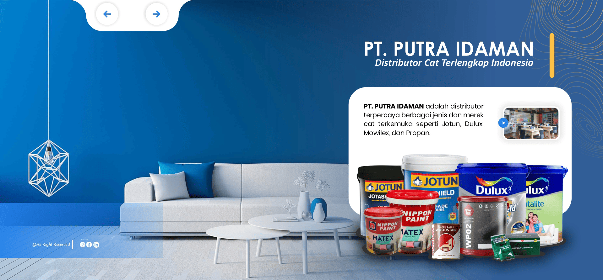 PT. Putra Idaman adalah distributor terpercaya berbagai jenis dan merek cat terkemuka seperti Jotun, Dulux, Nippon, Propan, Mowilex, dan lainnya. Kami berkomitmen untuk menyediakan produk cat berkualitas tinggi untuk berbagai kebutuhan, mulai dari konstruksi rumah tangga, proyek komersial, hingga industri. Dengan pengalaman dan jaringan yang luas, kami melayani penjualan di wilayah Jakarta dan sekitarnya dengan harga bersaing serta layanan terbaik.